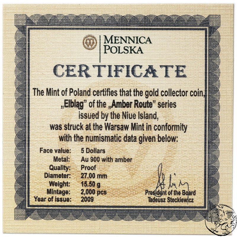 Niue, 5 dolarów, 2009, Szlak Bursztynowy, Elbląg